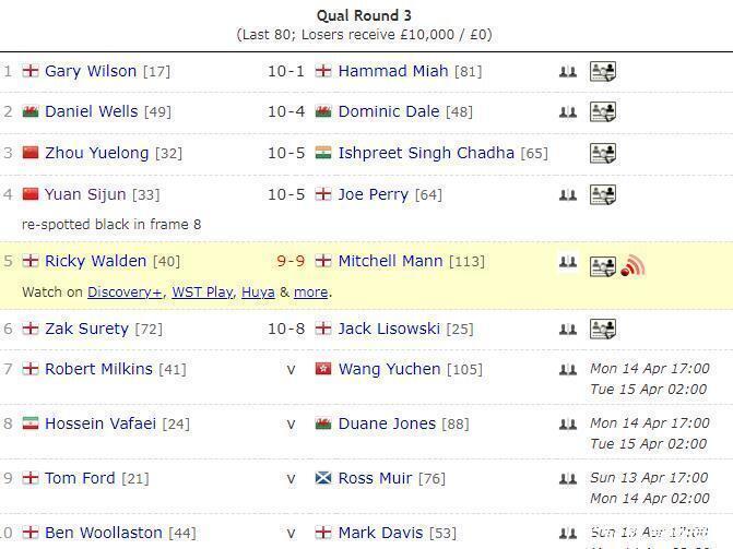 江俊则轰出一杆破百(109分)破百和四杆50+(63分、66分、66分、69分)。另外2场比赛中,也曾赢得年度最好少壮的国强,以10-3横扫利亚姆-海菲尔德,高阳以10-6赢得与宿将田鹏飞的“中国德比战”。